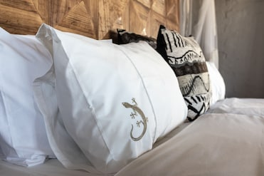 La ropa de cama de felpa acuna a los huéspedes con comodidad en este lodge. Las habitaciones están decoradas a medida y cuentan con servicio de champán y terraza privada para relajarse al aire libre.