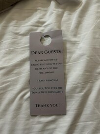 We emailed and got a response that our concerns were being addressed, but the unsigned email with a canned style of writing indicated that likely an AI bot is used to respond to key words. We did not trust this bot to communicate our desires to the housekeeping staff, so when we spotted the housekeeper in the hall, we asked him to please refresh our room,. When we returned, we were very pleased he had done this for us. Based on his shirt, we could see that he works for an outside company (not directly for Hotel Whiskey). This could all be avoided if there was a employee on site at a desk.