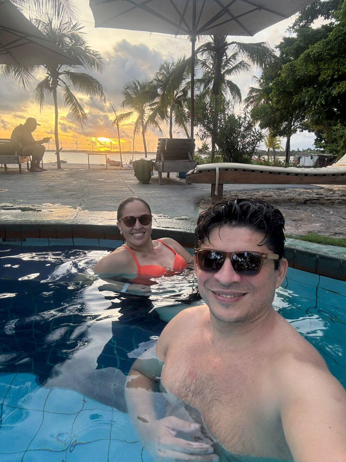 A piscina é maravilhosa e poder ficar assim na pousada pé na areia, foi bom demais.