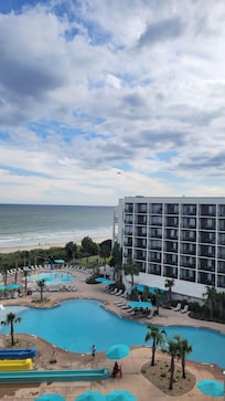 Resort frente a la playa con bar junto a la piscina, cerca de Myrtle Beach State Park