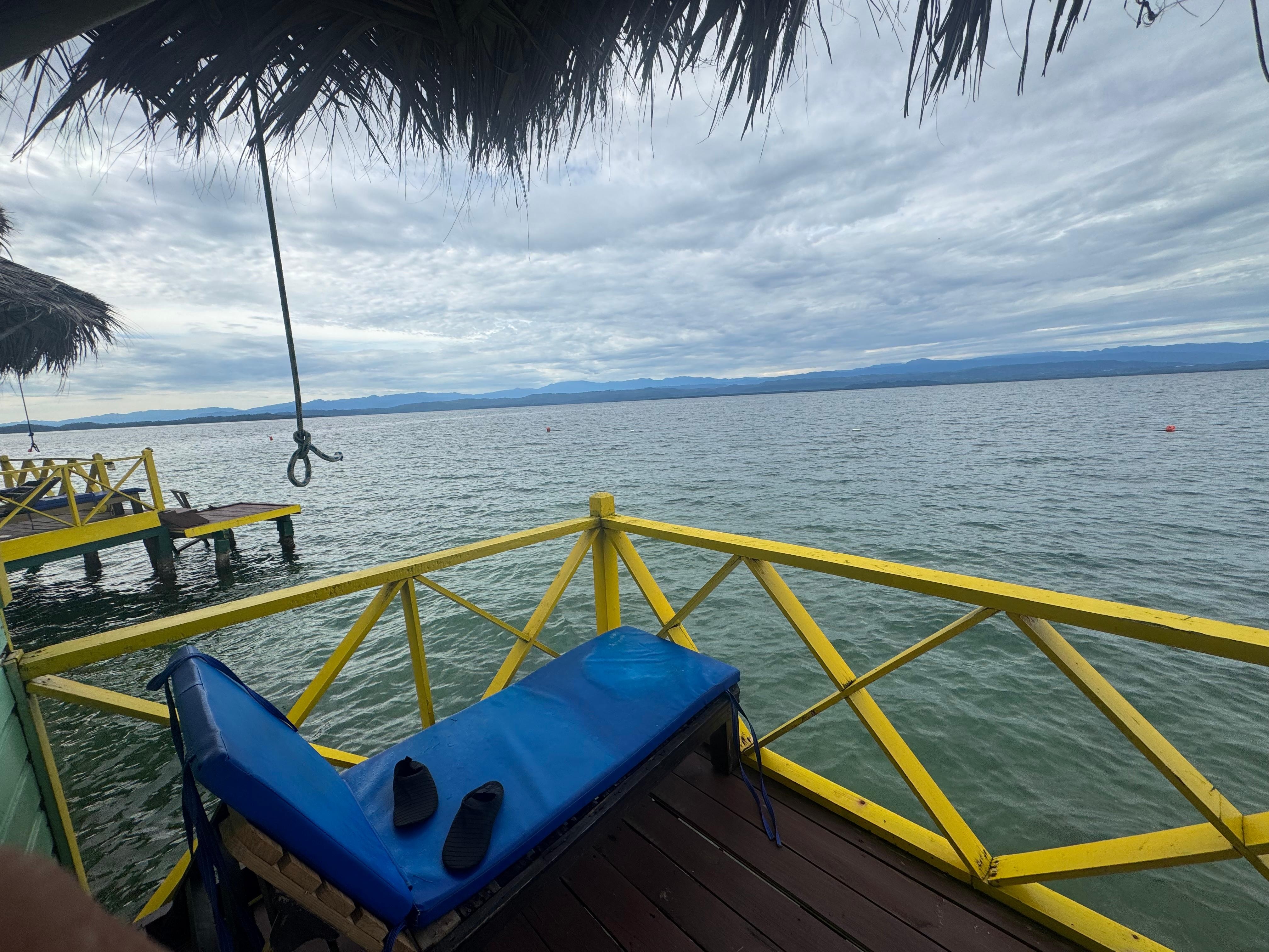 This is such a cool place! Beautiful surroundings and a unique experience. It is rustic, but a fun adventure. You must climb up and down quite steep stairs to get to the bedroom. Unfortunately, we had lots of rain, so took the water taxi into town and did some exploring. We went to red frog beach. Beautiful! Staff are nice. Food good. Not many vegetarian options, but overall good. We kayaked and snorkeled. Beautiful! I highly recommend.