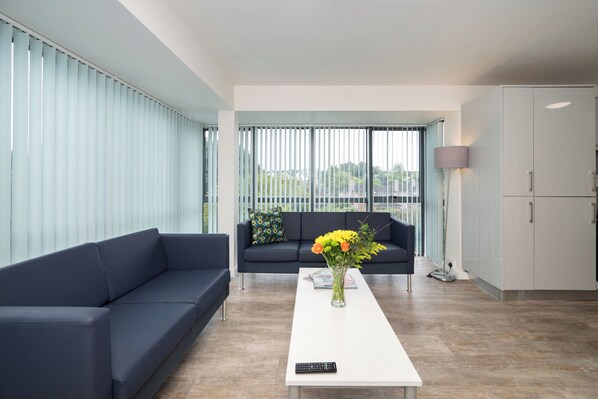 We had a wonderful stay at the University Hall Apartments, with 3 small kids the idea of a week cramped in a hotel room did not appeal...this apartment on the other hand was the ideal accommodation for us. Living area, kitchen, 4 double rooms all ensuite..perfect! The living/ kitchen area is really bright, fully stocked with all utensils and crockery you need, bedrooms all really clean and lits of power points throughout. Only advice would be to bring doorstops with you as the bedroom doors are all heavy fire doors so if you have little ones who want to run about you will need to wedge them to keep them open. Other than that, everything was great. A centra shop right beside you with all you need, Chinese restaurant behind you, easy access to the city centre..20 minute walk or hop on a bus that goes every 10/15 mins into the city..Ideal family accommodation!! Would recommend it without a doubt!