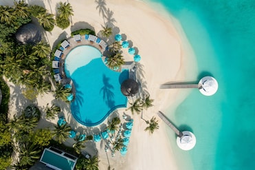 Las aguas cristalinas besan la arena blanca de este complejo isleño privado. Las sesiones de yoga en la playa y las aventuras acuáticas, desde navegar hasta bucear, crean diversión sin fin.
