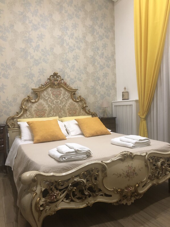 Only thing "royal" about this place is the curtain colour, - blue. Booked this accommodation in good faith believing they had king size beds - husband is 201cm tall, big framed as owner Antonio saw during check in. Discovered that evening "king size bed" was just a big bed surround with rusted metal hinges on the inside, in which was plonked a double slat base with very inferior thin mattress on it - this caused a very large gap between mattress and surround and we woke with backaches each day. Don't believe there are any king size beds, if so why weren't we given one as the other 2 apartments were unoccupied during our 3 night stay. Bathroom is modern but extremely cramped, knees press against vanity drawer handles when on the toilet. Only roll of toilet paper left was the one already on the holder. desk chair so wobbly it feels like its going to collapse. And the noise, we were on 3rd floor, F wing (which was appropriate given my rating and opinion), restaurant kitchens below in courtyard with staff yelling, constant pots banging, dishes clunking, empty bottles being disposed in bins, barking dogs, couples having domestics at 4.30am and right under flight path. Room serviced 48hrs later and another toilet roll left. Extremely glad to leave, but felt angry, ripped off and sleep deprived. Much better places to stay with owners who care and keen to please.