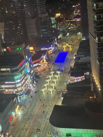 This hotel is located almost literally on the beach. From front door to beach is maybe 100 yards, hotel sits on a wide road way, with a walking park / pathway down the center of the street. At nite it turns into an amateur hour, singers, dancers, entertainment and great, great FOOD ,, it's close to good shopping, transportation and places to see. If there is a downside, it would be front desk staffing, a bit odd not having all nite staff, but no worries, only slight ( and I mean slight ) issue was not having an english speaking desk clerk, but we made it thru. Overall, a great hotel, location ,,, oh a very nice coffee shop on the ground floor by entrance ,,, this street knows how to party at nite ,,bring your hungries when you come. Should we return, will likely give this place a second look,