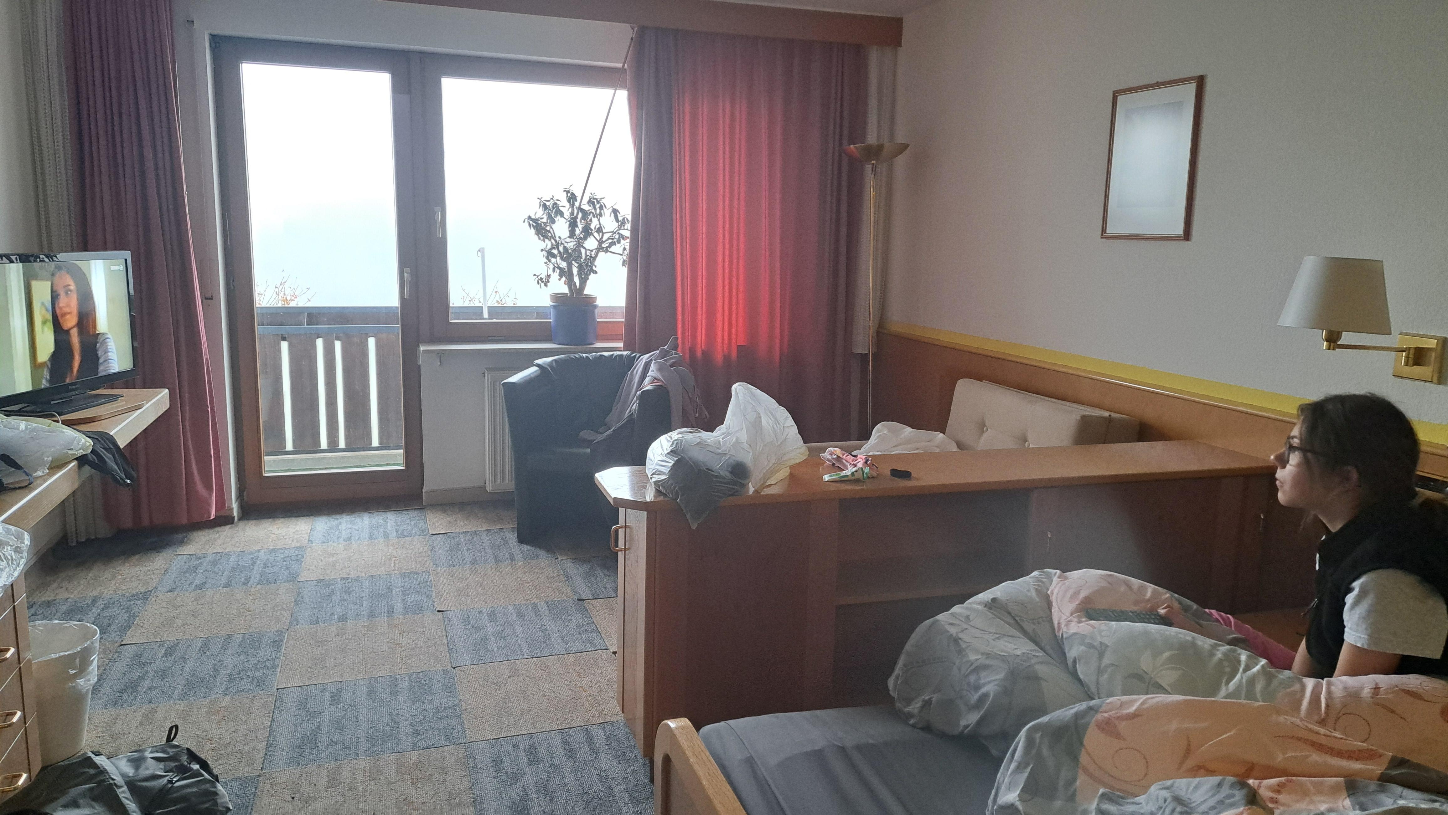 La chambre étais assez grande et confortable avec une belle vue sur la montagne belle salle de bain avec douche