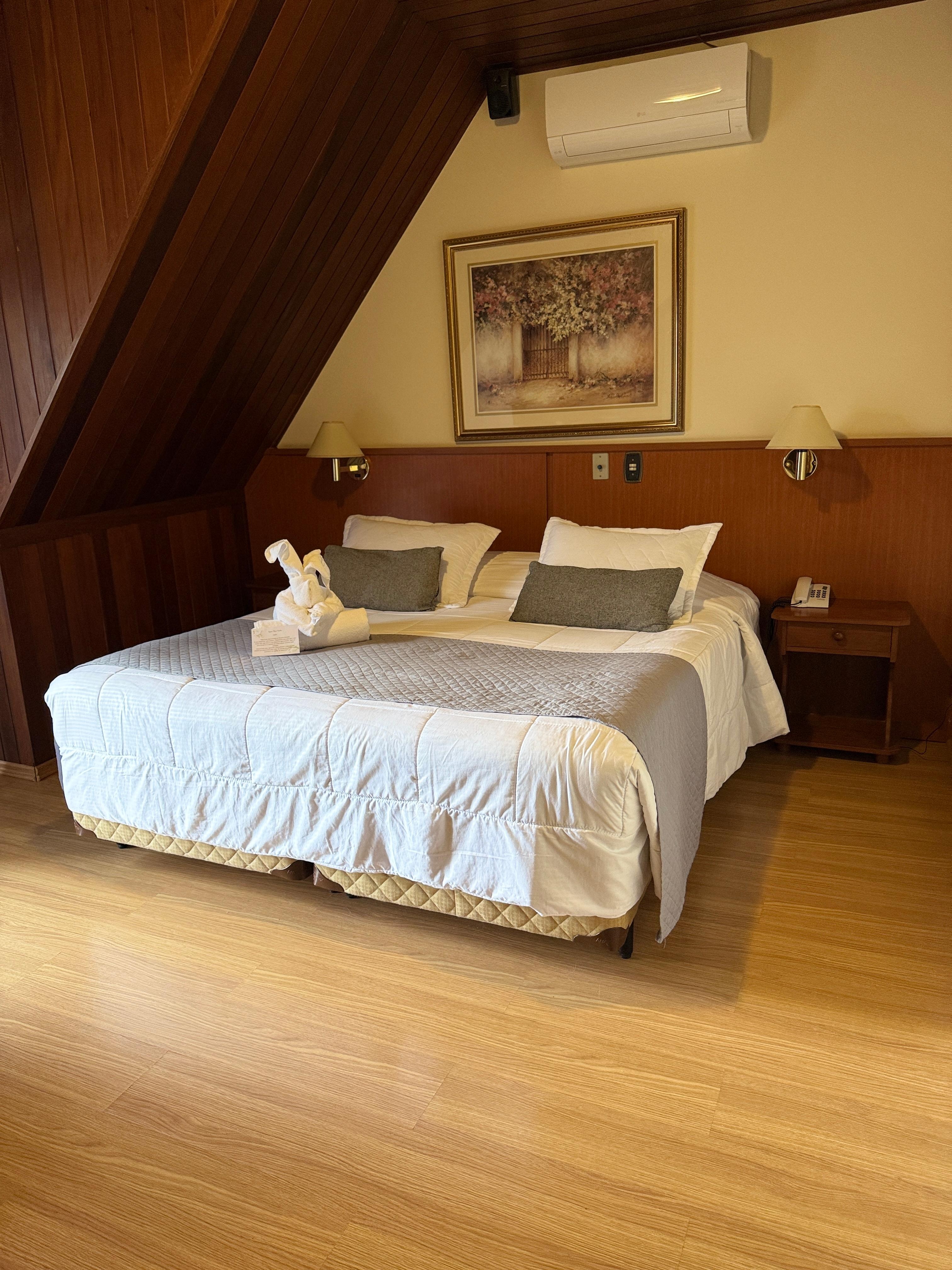 O quarto também nos surpreendeu: amplo, aconchegante, muito limpo, com uma vista maravilhosa para as montanhas e até um pôr do sol de encher os olhos. É o tipo de lugar que faz a gente relaxar de verdade.