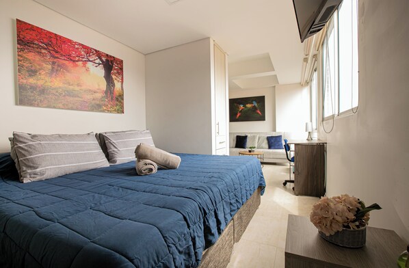 • 1 cama King size y 1 sofá cama individual grande