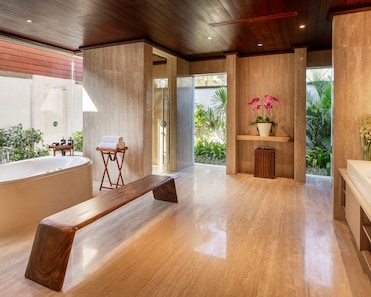 Very Awesome location, amazing water (no boats or oil rigs, just insanely pretty), wonderful staff (Restu was great!) and the room, restaurant and bar have everything you'd want. The spa was great, and the views from your own private outdoor area is relaxing. There is construction going on right now though between 8:45 ish and 5 PM, and depending on what they're doing that day, it is noticeable from your villa. We had a wedding going on during our stay, but the choice of music, music noise level and hours they stopped kept it from disturbing our stay too much.
