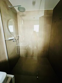 Televisión de pantalla plana, piso con calefacción