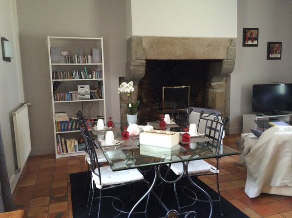 Façade magnifique, malheureusement, nous n'avons vu que la salle à manger à l'intérieur. Salle à manger refaite à neuf, rien à voir avec le charme de la façade.