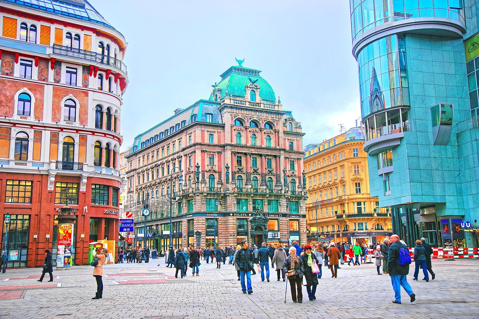 Ringstrassen Galerien is a fun shopping complex that offers a variety of food and shopping opportunities among a combination of old and modern architecture. The most prominent feature here is the glass bridge that covers the central walkway of the shopping complex, protecting you from the elements while still letting you see the sky.